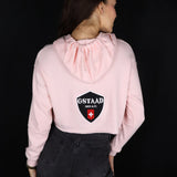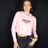 The design showcases the name "Gstaad" in bold, elegant lettering, prominently displayed on the front of the hoodie. The print is thoughtfully positioned to capture the distinctive essence of the city, infusing a unique touch into the overall design. The pink backdrop of the hoodie creates a refined and modern contrast, elevating the pattern and drawing attention.