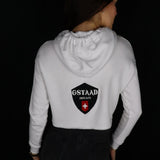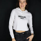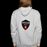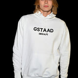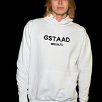 The design features the name "Gstaad" in bold and sophisticated lettering, carefully printed on the front of the white hoodie. The print stands out elegantly, adding a distinctive touch to the overall design. The white color of the hoodie gives a sense of purity and sophistication.