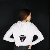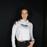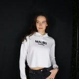 The design proudly features the city name "Malibu" in sleek, bold lettering, meticulously printed on the front of the white hoodie. The print exudes sophistication, adding a distinctive touch to the overall design. The pristine white color of the hoodie reflects a modern and clean aesthetic, capturing the essence of Malibu's coastal charm.