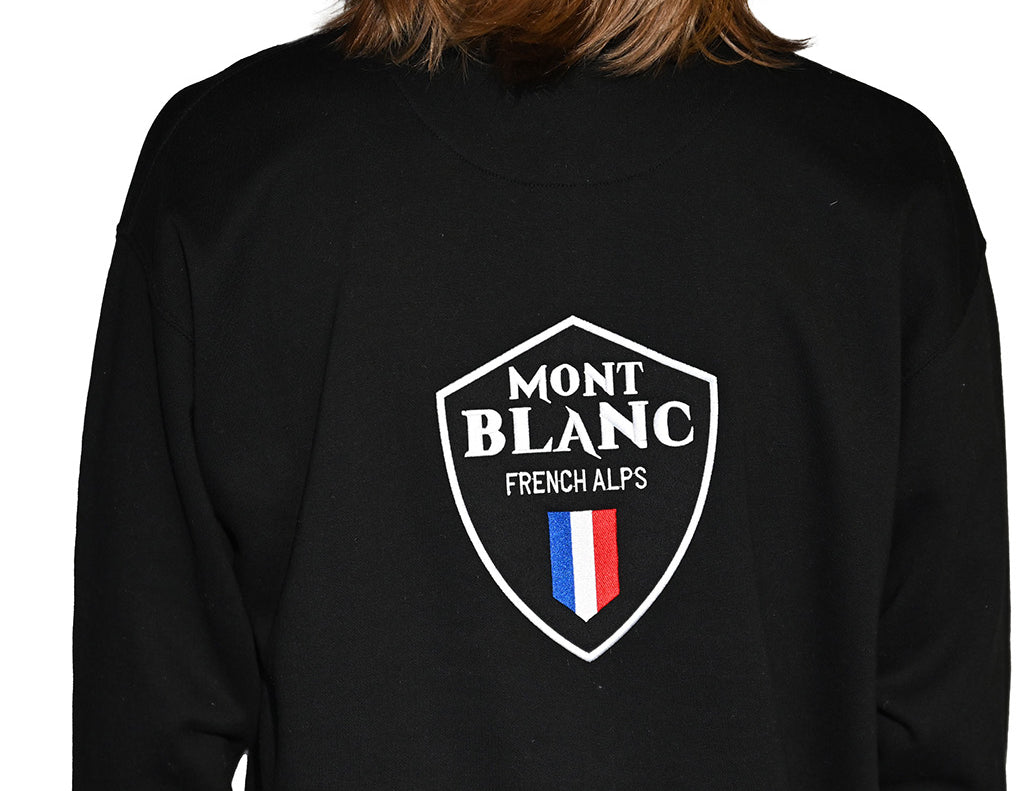 Whether you're enjoying a scenic hike, climbing its towering walls, or simply admiring the majesty of Mont Blanc from afar, the Black Mont Blanc Sweatshirt provides style and comfort throughout your alpine experience.