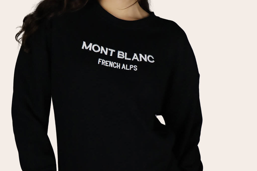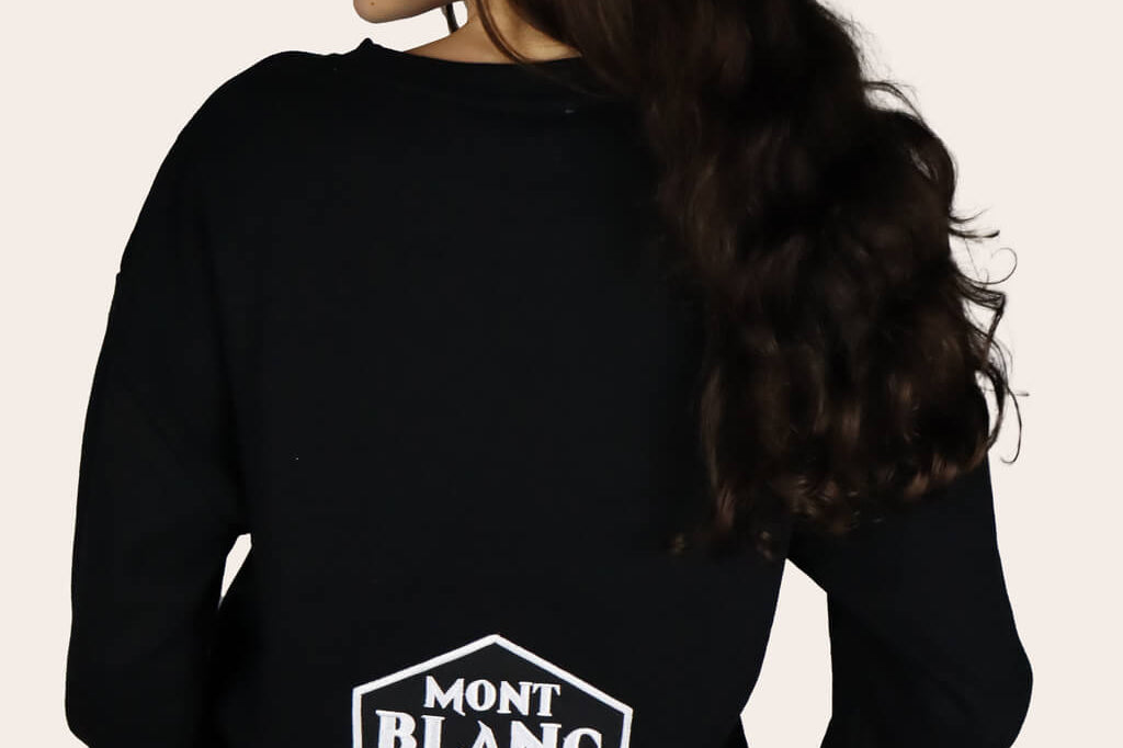 Look sophisticated and elegant in the Mont Blanc mountains with our Mont Blanc Sweatshirt in black. This classic design garment combines style and comfort so that you can fully enjoy the grandeur of this renowned mountain.