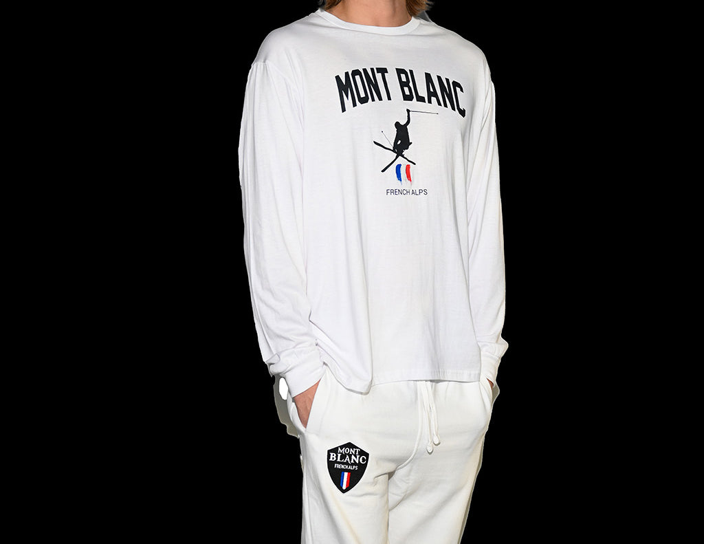Whether you're marveling at the panoramic views of Mont Blanc, exploring the enchanting mountain trails, or just enjoying the laid-back atmosphere, our white sweatpants will give you the comfort and style you need to make the most of your Mont Blanc experience.