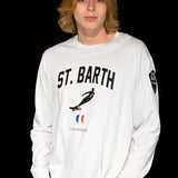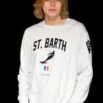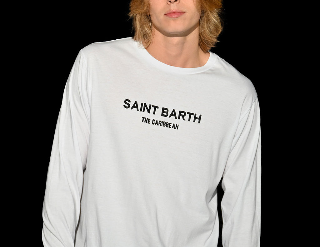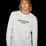 The white Long Sleeve T-Shirt features the name "Saint Barth" in subtle lettering printed on the front. The clean, minimalist design highlights the beauty and charm of this enchanting Caribbean island. The white color of the T-Shirt gives a fresh and bright feel, perfect for standing out in the relaxed and tropical atmosphere of Saint Barth.
