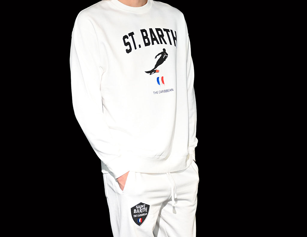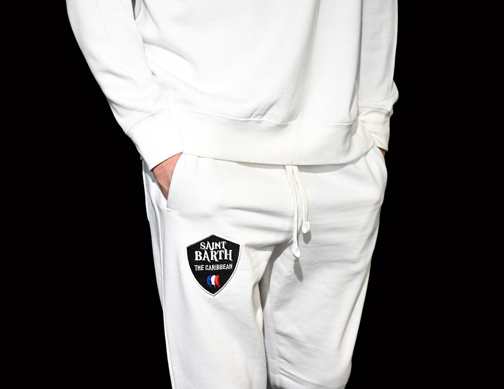 Immerse yourself in the luxury and tropical freshness of Saint Barth with our white sweatpants. These versatile garments are the perfect choice to keep you comfortable and stylish as you explore the wonders of this exclusive Caribbean island.