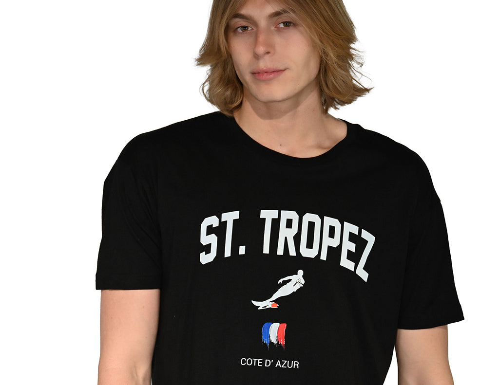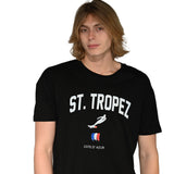 Made from high-quality materials, our black Short Sleeve T-Shirt feels soft and comfortable to the touch. Its cool and breathable design will keep you comfortable as you enjoy Saint Tropez's sunny days and warm sea breezes.