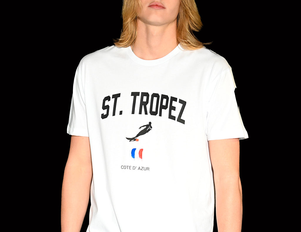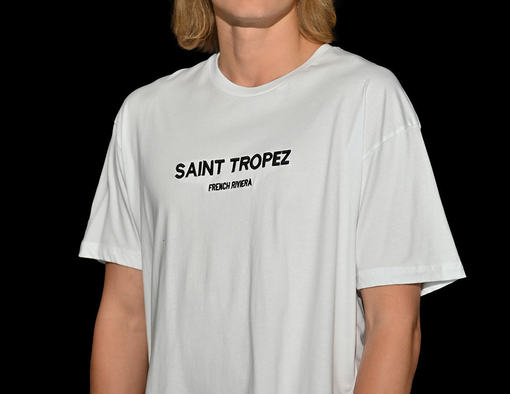 Enjoy the sophisticated atmosphere of Saint Tropez and stand out with our White Short Sleeve T-Shirt, a fresh and elegant option to enjoy your days in this iconic destination on the French Riviera.
