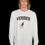The white Long Sleeve T-Shirt features the name "Verbier" in subtle lettering printed on the front. The clean, minimalist design highlights the beauty and elegance of this famous Swiss ski resort. The white color of the T-Shirt gives a fresh and bright feel, perfect for standing out in Verbier's alpine environment.